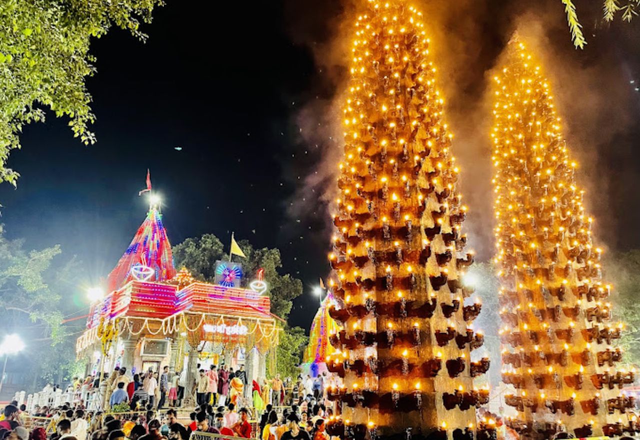 One of the 51 Shakti Peethas, Harsiddhi Mata temple is famous for its two pillars adorned with lamps that create a stunning sight when lit.